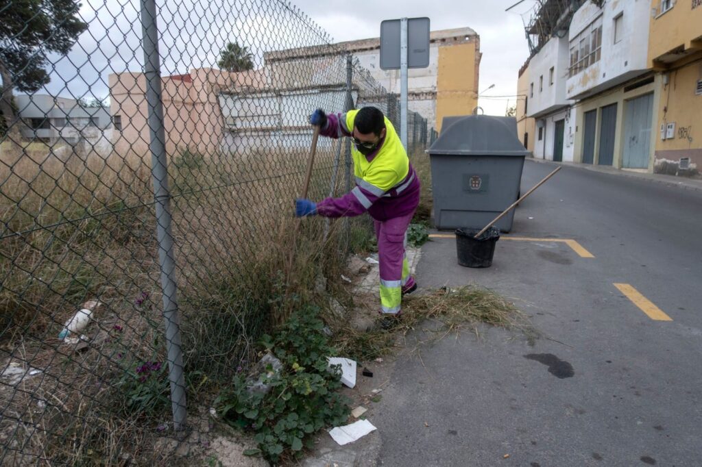 El operativo de limpieza intensiva que desarrollan el Ayuntamiento de Almería, a través del Área de Sostenibilidad Ambiental, y la empresa concesionaria, ‘Entorno Urbano’, permanecerá desplegado en la barriada de San Luis al menos durante todos los domingos que restan del mes de febrero. Así se ha diseñado dentro de la programación de este dispositivo especial que emplea operarios y maquinaria especifica en estas tareas cada fin de semana, en horario dominical entre las 6 y las 12.00 horas.