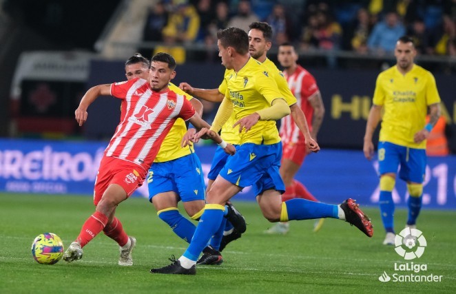 Y como frente a la Lazio, el Almería estuvo también brillante ya en la reanudación de la Liga porque si bien fueron los cadistas los que comenzaron el encuentro llevando la iniciativa, poco a poco los rojiblancos fueron imponiéndose. De hecho estuvieron muy bien plantados, pusieron intensidad en todas sus acciones, supieron mantener a raya al rival y mover con criterio el balón, buscando la meta contraria. En el minuto 14 Ramazani, con un potente disparo desde fuera del área, obligó a emplearse a fondo al meta Ledesma.