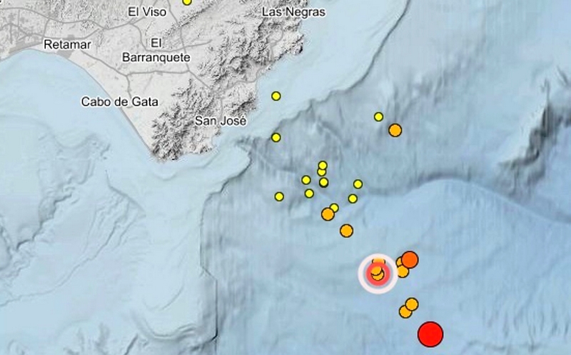 Un total de 25 réplicas han seguido al terremoto de magnitud 5,3 que se registró a las 7,13 horas de este lunes con epicentro en aguas del Mediterráneo en Cabo de Palos, frente a la costa de Almería y a unos 32 kilómetros de distancia de Níjar, si bien todas ellas de menor intensidad.