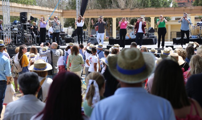 El grupo sevillano Raya Real ha actuado este sábado por la tarde en el Parque Municipal, tras la gran fritá popular y la degustación de habas con tocino, deleitando a los cientos de asistentes que no han dejado de bailar las sevillanas y rumbas con ritmos sureños de esta agrupación creada hace más de tres décadas.