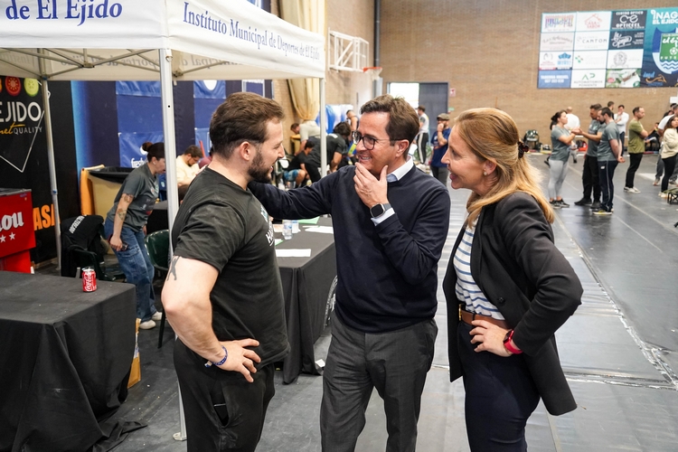 El alcalde de El Ejido, Francisco Góngora, junto a la concejal de Deportes, María José Martín, el presidente de la Junta Local, Jerónimo Ibáñez, han asistido a este campeonato que ha estado organizado conjuntamente por el Club Halterejido, la Federación Andaluza de Halterofilia y el Comité Español de Halterofilia Máster, con la colaboración del IMD y la Diputación de Almería.