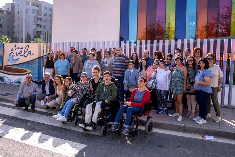 Ángel Escobar ha estado visitando la nueva imagen de la sede de A Toda Vela y ha podido hablar con usuarios de la Asociación para saber de primera mano qué opinión tienen de este mural, que se trata de un trabajo realizado de la mano del Laboratorio Artístico Arlequín, en el que han participado también personas con discapacidad intelectual o del desarrollo.