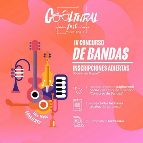 Las bandas pueden inscribirse a través de la web oficial del festival (www.coolturalfest.com) donde también se encuentran todas las bases. El plazo de inscripción finalizará el viernes, 8 de julio, a las 23.59 horas. Se deben mandar las propuestas junto con la subida de un vídeo a YouTube para la valoración por parte de la organización.