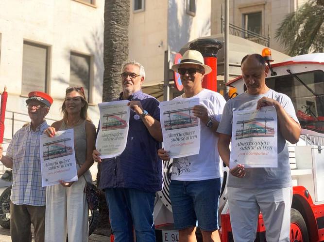 Tras las declaraciones a los medios los integrantes de la Mesa del Ferrocarril han participado en un recorrido por las calles de la ciudad en el tren turístico como una forma más de solicitar una apuesta real por las infraestructuras ferroviarias de la provincia.