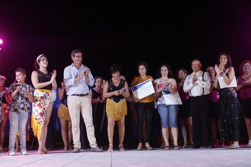 Durante la exhibición de ‘Adra Baila’, dirigida por Rosario Castro y Andrés Payán, los espectadores disfrutaron en el Pago del Lugar de una muestra de los bailes aprendidos durante el curso por sus alumnos y alumnas, en una gran variedad de estilos y ritmos, con un motivo solidario y cultural. ‘Adra Baila’ cada año aporta su granito de arena y este año pretende ayudar a estas familias con sus tratamientos. Un gesto de solidaridad del municipio abderitano y, especialmente, de esta asociación de la localidad.
