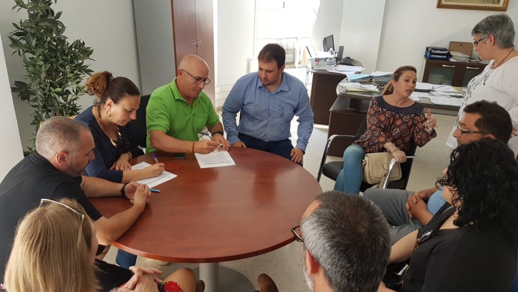 En virtud del acuerdo, rubricado por los representantes de los sindicatos UGT, CCOO, CSI-CSIF, USO y CNT, el Ayuntamiento de Adra se compromete a la mejora de las condiciones laborales de nueve trabajadoras municipales del servicio de limpieza de edificios municipales, mediante la transformación de su tipo de contrato de fijo-discontinuo a un contrato laboral indefinido a partir del próximo 1 de julio.