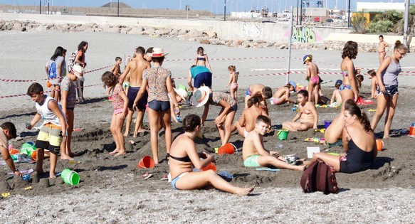 Para el concurso de castillos de arena se han distribuido cubos y herramientas para que los participantes pudieran confeccionarlo. Bogas Shop ha colaborado en esta actividad. Tras la competición por conseguir el mejor castillo de arena, pequeños y mayores han podido disfrutar de la fiesta de la espuma, una actividad patrocinada por Pizzería Voy Volando.
