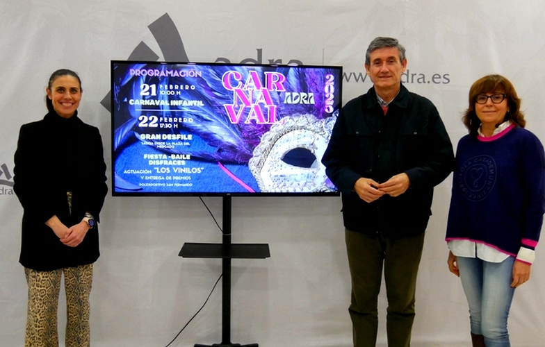 El Carnaval de Adra es uno de los eventos más esperados cada año por los vecinos y vecinas de la ciudad milenaria. Este 2025, las calles del municipio se teñirán nuevamente de color, originalidad y diversión, los días 21 y 22 de febrero. Así lo ha anunciado este jueves el alcalde, Manuel Cortés, acompañado de las concejalas de Cultura y Presidencia, Elisa Fernández y María Paz Fernández, en la presentación del cartel de esta fiesta y las actividades programadas por el Ayuntamiento de Adra.