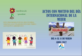 El Ayuntamiento de Adra, a través del Área de Mujer, ha organizado la ‘Semana por la Igualdad’, con el diseño de un programa de actividades que se desarrollarán entre el 6 y el 11 de marzo, coincidiendo con la conmemoración del Día Internacional de la Mujer el próximo 8 de marzo.