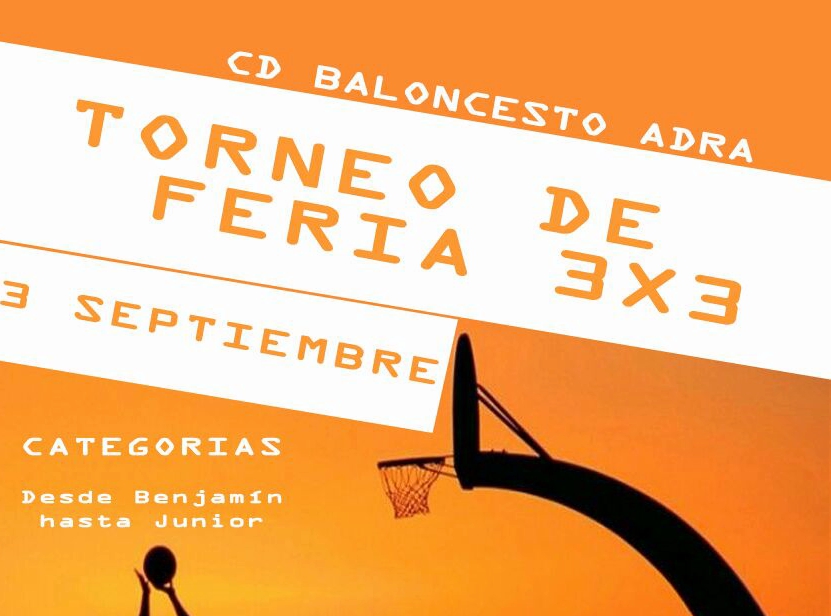 Pabellón de Deportes de Adra acogerá este domingo, 3 de septiembre, el Torneo de Baloncesto de Feria 3×3, organizado por el Club Deportivo de Baloncesto en colaboración con el Área de Deportes del Ayuntamiento de Adra.