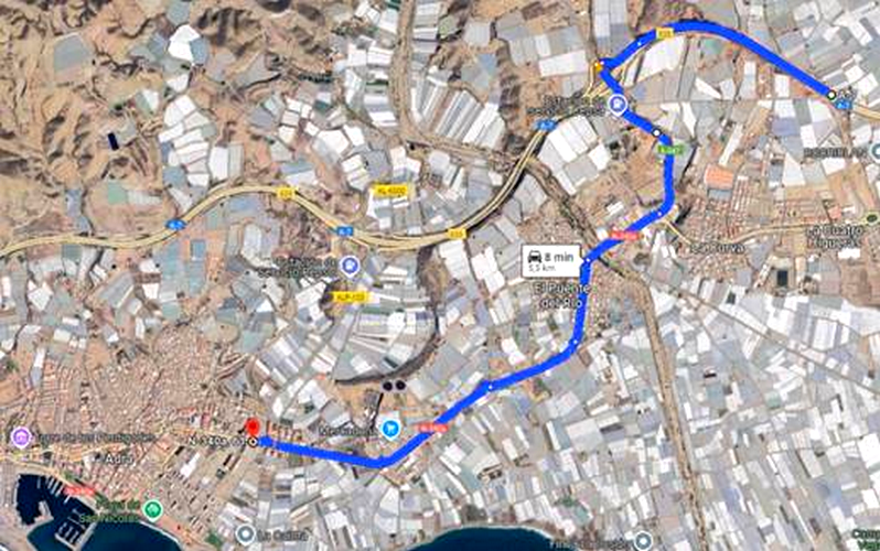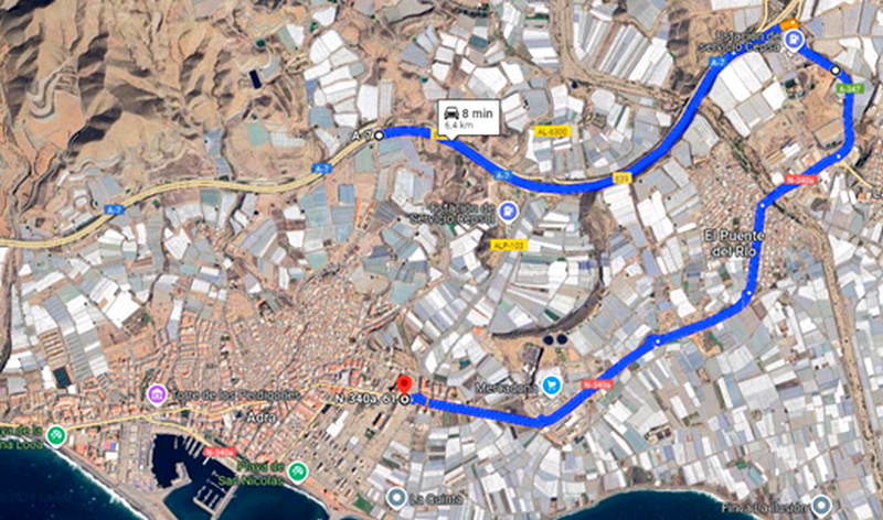 - Para los vehículos que vayan a Adra desde la autovía, tanto desde Almería como desde Granada, se les desviará por el enlace 838.