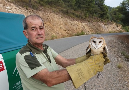 Agentes de Medio Ambiente de la Junta liberan un ejemplar de lechuza en Sierra de Gádor