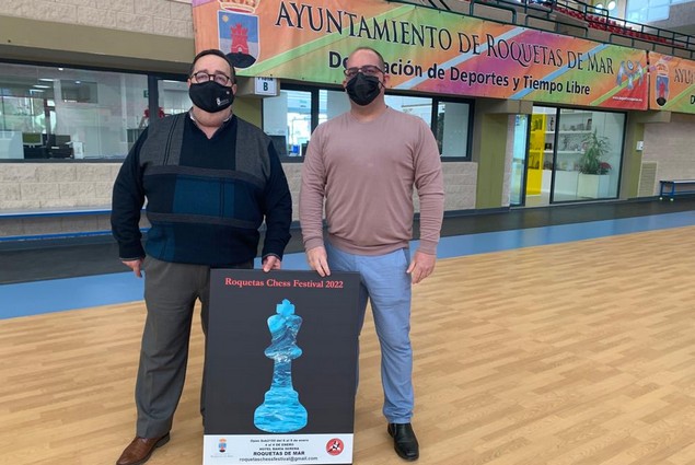 El concejal de Deportes y Tiempo Libre del Ayuntamiento de Roquetas de Mar, José Juan Rubí, acompañado por el presidente del Club de Ajedrez Roquetas, Javier Garrido, ha presentado esta mañana la XXXIII edición del Roquetas Chess Festival, que tendrá lugar del 4 al 9 de enero de 2022. La prueba, de gran prestigio internacional, contará con la participación de jugadores y aficionados de gran nivel, procedentes de más de 25 países.