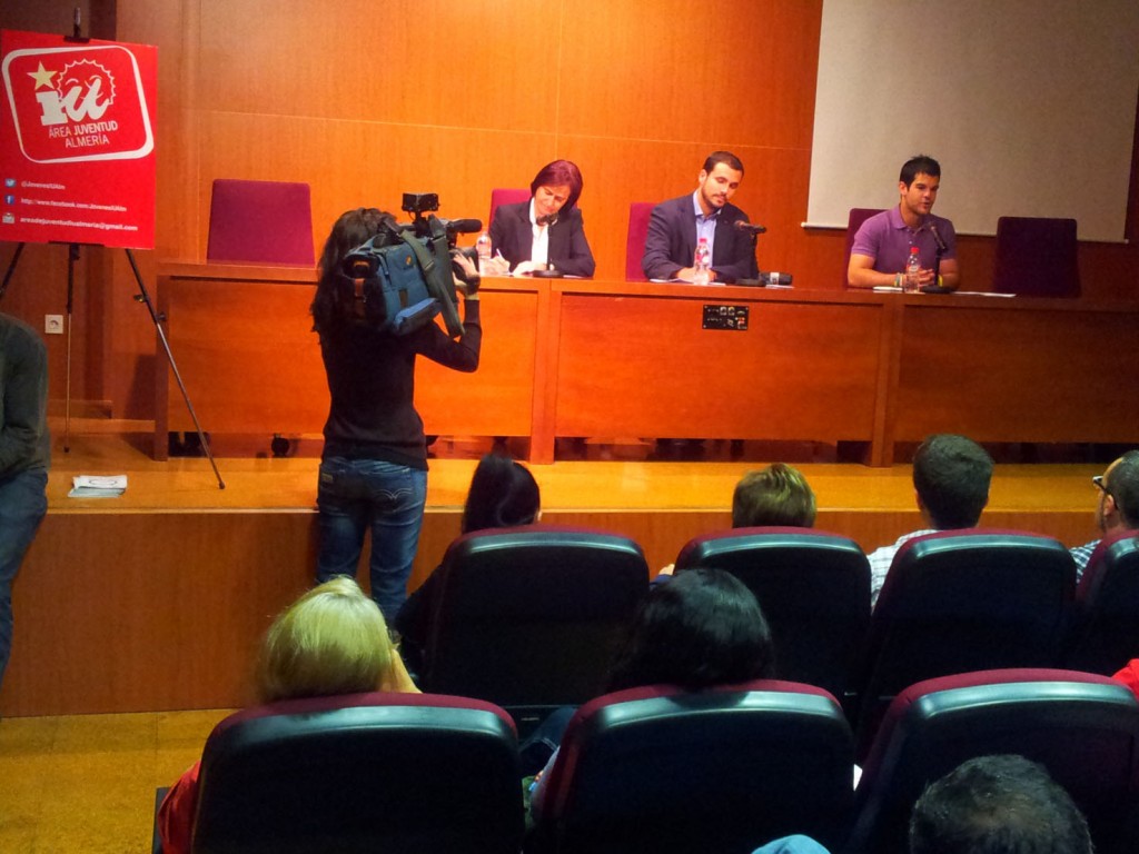 Tras la exposición del diputado de Izquierda Unida, se produjo un extenso debate donde los alumnos de la Ual y otros asistentes trataron diversos temas, como las alternativas al capitalismo, política nacional, el acuerdo PSOE-IU en Andalucía, etc.