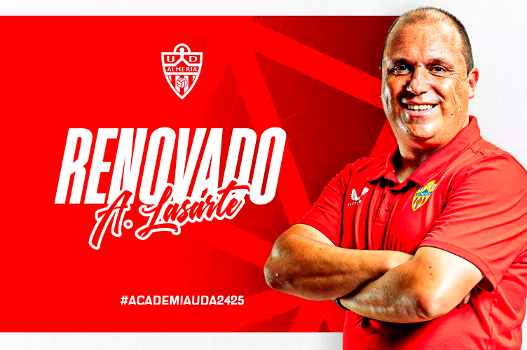 Alberto Lasarte, técnico de la Academia, continuará dos temporadas más en la Unión Deportiva Almería tras el acuerdo alcanzado por ambas partes una vez que el entrenador finalizó contrato el pasado mes de junio. De esta manera se sigue apostando por el futuro y por la continuidad de un hombre de la casa que acumula ya seis temporadas en distintas etapas dentro de las bases del Club. Esta temporada, la primera al frente del equipo Filial, consiguió un meritorio y difícil ascenso para colocar al conjunto rojiblanco en 2ª RFEF.