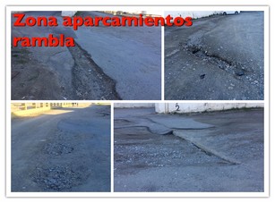 Por último, los populares critican el lamentable estado que presenta la zona de la rambla de Albox que se utiliza como aparcamiento, la cual, aparte de suciedad, está llena de grandes baches y socavones que dificultan y suponen un grave riesgo para el tránsito cotidiano de vehículos y personas, siendo imposible acceder a esta zona los días de lluvia por la formación de enormes charcos y barro. Para ello, proponen que se lleven a cabo las mejoras y reparaciones necesarias para adecentar y compactar esta zona tan utilizada para el estacionamiento de vehículos, y ofrecer un servicio y una imagen adecuada a los vecinos y visitantes.