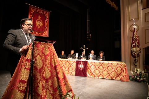 El pregonero ha narrado con detalle, deteniéndose en cada uno de los protagonistas, los que contribuyen a la estética de la Semana Santa, y los que transmiten el sentimiento de la Semana de Pasión, un recorrido cofrade por Almería estos días de primavera: los músicos que cada noche de invierno preparan su repertorio en la ‘punta arriba’ de la Rambla, Pepe Soriano que en Cuaresma llena la ciudad de capirotes de cartón, Pedro el de Olga de cuya tienda salen metros y metros de tela que viste en la penitencia, Lola la mujer que desde La Cueva del Morato defiende a capa y espada la saeta, Juan Aguilera que proclama con el micrófono la pasión… Estos son solo algunos de los muchos personajes que ha puesto en valor Alfredo Casas, el cual seguidamente se ha paseado por cada una de las hermandades y cofradías que día a día salen en penitencia en la Semana Santa de Almería.