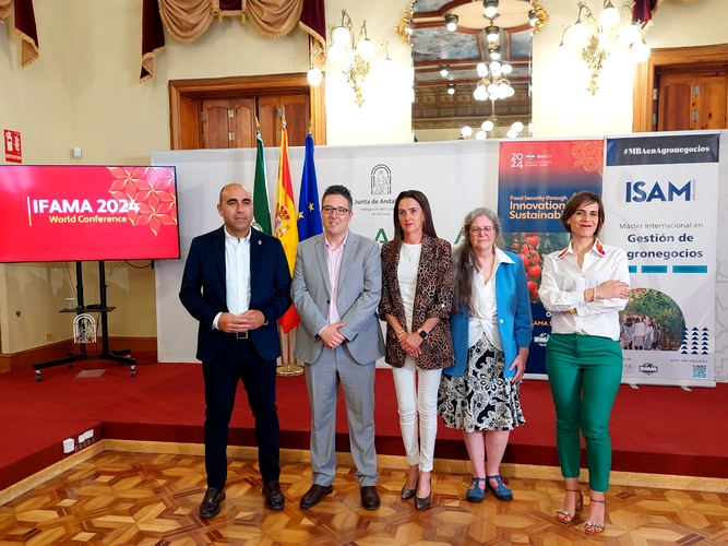 La delegada del Gobierno de la Junta de Andalucía en Almería, Aránzazu Martín, ha presentado esta mañana, junto a Germán Fernández, presidente y fundador de ISAM y a Kathyn White, directora ejecutiva de IFAMA,la Conferencia Mundial IFAMA (Asociación Internacional de Gestión de Alimentos y Agronegocios), que en su 34ª Edición se celebra en Almería del 17 al 20 de junio, con la participación de la Consejería de Agricultura, Pesca, Agua y Desarrollo Rural, a través de AGAPA (Agencia para la gestión agraria y pesquera de Andalucía)