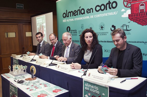 El XIII Festival Internacional de Cortometrajes ‘Almería en Corto’ va a llenar de cine la capital y la provincia con un total de 56 actividades. Ésta es la primera de las noticias que se han desvelado esta tarde en la rueda de prensa que el presidente, Gabriel Amat y el alcalde, Luis Rogelio Rodríguez-Comendador han ofrecido para desgranar la programación del XIII Festival ‘Almería en Corto’, que organiza la Institución con el Ayuntamiento de Almería y que se celebra del 2 al 6 de diciembre en el Auditorio Municipal Maestro Padilla. Ambos han estado acompañados por la diputada de Cultura, María Vázquez; el concejal de Cultura, Ramón Fernández-Pacheco; y el director del Festival, Luis Serrano.