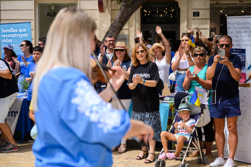 Esta conmemoración del Día Mundial del Refugiado ha contado con diferentes actuaciones como un baile regional de Ucrania, varias coreografías a cargo de niños y Nadiia -Violín ha interpretado el himno de Ucrania y ‘Viva la vida’.