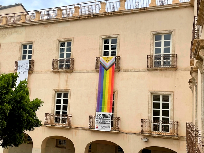 ‘Almería es una ciudad sin etiquetas’. Es el mensaje que quiere compartir el Ayuntamiento de Almería, con la campaña que comparte en la red del mobiliario urbano, con la bandera que preside la sede municipal en la Plaza Vieja y el amplio programa preparado por el Área de Familia, Inclusión e Igualdad, junto a asociaciones y colectivos. Aunque el día del Orgullo LGTBIQ+ se celebra oficialmente el 28 de junio, el Ayuntamiento ha centrado la manifestación, lectura de manifiesto y posterior fiesta musical para el sábado, día 29, con el fin de que pueda asistir el mayor número de personas.