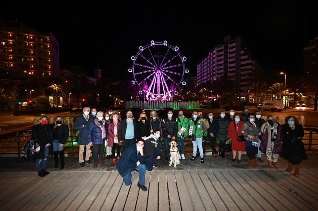 Almería se ha iluminado de verde este lunes por el Día de Santa Lucía, patrona de la ONCE, en honor al colectivo de personas ciegas o con discapacidad visual grave. Un gesto del Ayuntamiento de Almería que la ONCE ha agradecido en la Fuente de los 103 Pueblos con un aplauso masivo de los afiliados, vendedores y sus trabajadores a la ciudad de Almería por su sensibilidad y compromiso con la discapacidad.