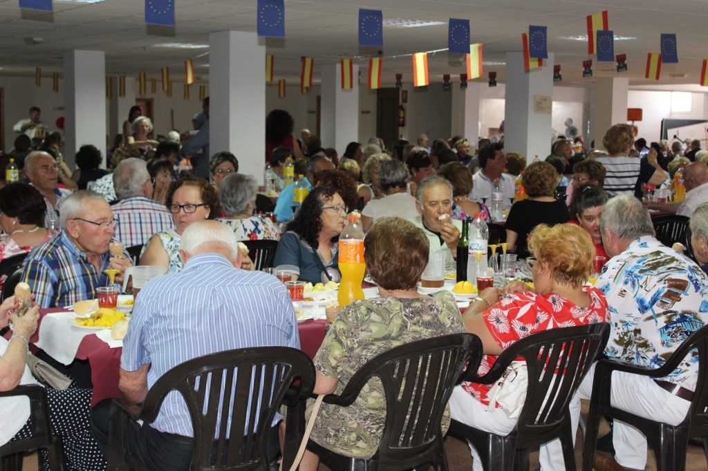 Alrededor de 400 mayores del municipio de Pulpí han participado hoy en la comida de convivencia y asamblea general organizada por la Asociación de Pensionistas “Pintor Pedro Antonio” de Pulpí, en colaboración con la Concejalía de Mayores del Ayuntamiento de Pulpí. La jornada, que ha contado con la presencia del alcalde de Pulpí, Juan Pedro García, y de concejales del Equipo de Gobierno, se ha celebrado en el Sótano del Centro de día “Encarnación y María Peregrín” y ha comenzado con la degustación de una paella que todos han disfrutado, a continuación, de la música en directo del Dúo “Ritmo Latino” y “Epsylon”.