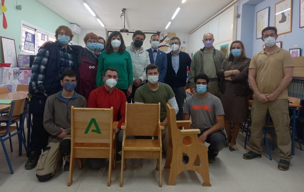 Estos futuros trabajadores de la carpintería quisieron llevar personalmente las sillas para asegurarse que el diseño se adaptaba a las necesidades del alumno y conocerlo personalmente. El delegado ha señalado que en cuanto se les comunicó la idea “se prestaron enseguida a colaborar con gran predisposición siguiendo las indicaciones de sus profesores”.