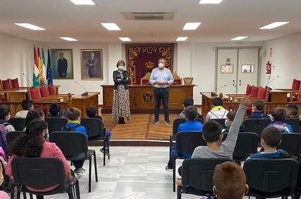 El alcalde de Pulpí, Juan Pedro García, y la concejala de Asuntos Sociales, Fina García, han recibido a los escolares en el salón de plenos del consistorio, donde el regidor ha explicado a los alumnos la función que tiene el alcalde y los concejales de un Ayuntamiento, además de cómo se gestiona éste para solucionar los trámites administrativos de los ciudadanos.