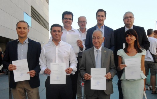 El presidente del PP de Almería, Gabriel Amat, y los siete diputados provinciales que junto a él forman el grupo que corresponde al PP en la Junta Electoral de Almería, se han trasladado este jueves a la Ciudad de la Justicia para recoger sus actas de diputados.