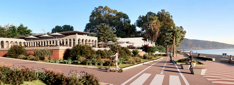 La plataforma de playas se elevará sobre un jardín de ribera, evitando cerramientos opacos y garantizando la continuidad visual hacia el mar. Una barandilla de vidrio de 90 centímetros reforzará esta permeabilidad visual y reducirá la presencia física de la instalación desde el paseo marítimo.