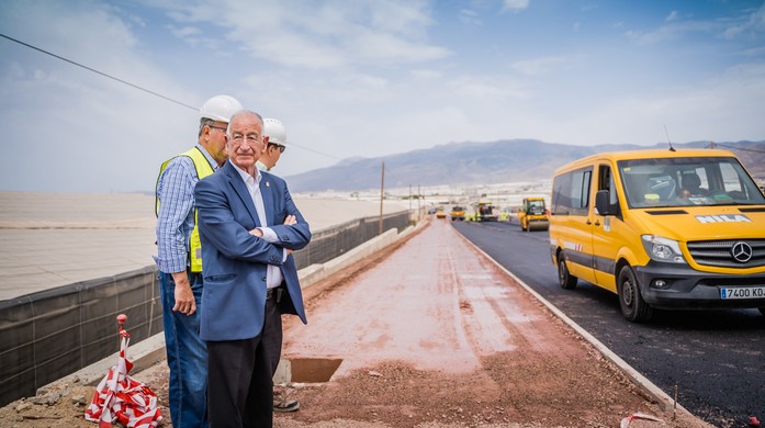 El alcalde de Roquetas de Mar, Gabriel Amat, ha visitado las obras de construcción del acceso a Roquetas de Mar en su primera fase por el Camino del Cañuelo. En estos momentos, se están llevando a cabo los trabajos de asfaltado de la carreta para, posteriormente, continuar con la instalación de las luminarias, por lo que se espera que esta primera fase finalice a finales de este mes.