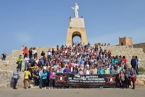 Cerca de quinientas personas han participado este sábado en la actividad gratuita, abierta a toda la ciudadanía, organizada por la asociación Amigos de la Alcazaba. Delegación provincial de la Asociación Española de Amigos de los Castillos (la segunda en número de asociados de todo el país tan solo superada por la de Madrid), la asociación ha conmemorado esta mañana el Día Nacional de los Castillos invitando a una reivindicativa ruta ‘Por Las Murallas de Almería’, título que también encabeza el manifiesto promulgado, donde solicitan la preservación, actuación y puesta en valor inmediata de este patrimonio que da fe de la historia milenaria de la ciudad de Almería. Partiendo desde Puerta de Purchena, han recorrido el Cerro de San Cristóbal, La Chanca y Alcazaba, con la guía de expertos como Lorenzo Cara, Valeriano Sánchez, María Teresa Pérez, Alfonso Ruiz, Juan Díaz, José Campoy y Francisco Verdegay.