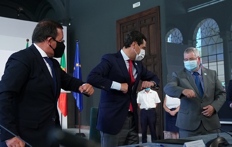 El presidente de la Junta de Andalucía, Juanma Moreno, ha firmado junto con los presidentes de las Comisiones de Desarrollo y Coordinación del Algarve y Alentejo, Francisco Serra y Joaquim Roberto Pereira, una declaración para situar a la Eurorregión en una posición de liderazgo en Europa y asentar y definir las iniciativas prioritarias en materia de cooperación transfronteriza. Una cooperación que, según ha subrayado, se ha visto afectada en gran medida por la crisis de la Covid-19 que ha supuesto el cierre de las fronteras durante más de tres meses.