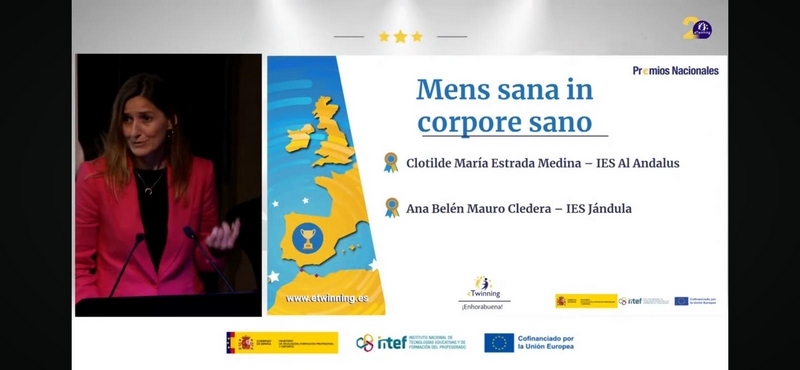 En la categoría de Educación Secundaria han sido premiados dos proyectos andaluces: el trabajo titulado ‘Mens Sana in Corpore Sano’, realizado por los docentes Clotilde María Estrada y Matilde María Morales, del IES Al-Andalus de Almería, y María Mercedes Casuso Quesada, Silvia Merino, Manuel Morillas y Ana Belén Mauro, del IES Jándula de Andújar (Jaén), en colaboración con centros educativos de Francia e Italia.
