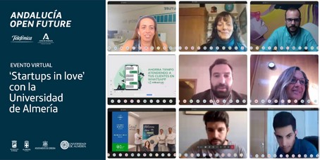 Este jueves ha tenido lugar el evento online “Startups in love”, organizado por Andalucía Open Future y la Universidad de Almería para acercar el talento universitario a las startups. La actividad, enmarcada dentro del programa de fomento del emprendimiento de la UAL, ha propiciado que startups aceleradas por Andalucía Open Future expongan al alumnado de la Universidad sus soluciones tecnológicas y su experiencia como emprendedores.