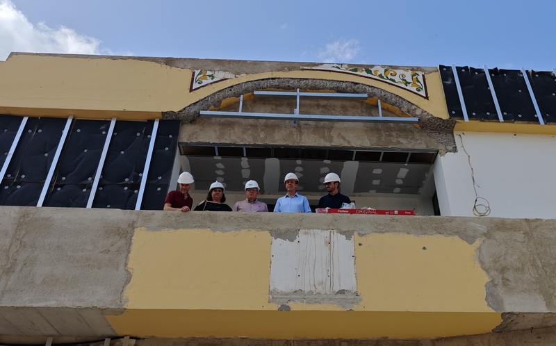 La visita ha discurrido por las diferentes dependencias y estancias del edificio, cuyas obras se encuentran ya en torno al 50%, de manera que los plazos de ejecución avanzan según lo previsto. Desde que diesen comienzo el pasado mes de febrero, se ha procedido a la sustitución de ventanas,sistema de iluminación Led, climatización y calefacción con sistema inteligente, purificadores de aire, y grifería e inodoros ecoeficientes. Además, se han modificado algunas dependencias para mejorar la atención al público y también se está renovando el suelo de todo el edificio. En cuanto a la estructura y fachada exterior, ya puede apreciarse el revestimiento con piedra natural en parte de la misma, así como se ha proyectado el nuevo acceso mediante un sistema compuesto por atrio de entrada, rampas y escaleras accesibles.