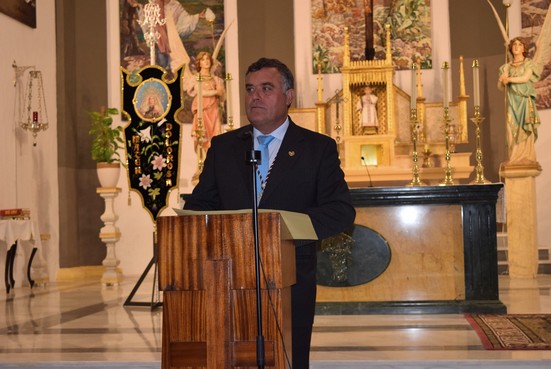 El acto dio comienzo al término de Santa Misa, durante la cual tuvo lugar la función principal de las Hermandades y Cofradías de la Parroquia, con la bendición de imposición de medallas a cerca de una veintena de nuevos hermanos. Asimismo, se hacía entrega a la alcaldesa de la villa, Lourdes Ramos de la medalla de cofrade de honor vitalicio de la Hermandad de La Redención y se bendecía la toca y el puñal que lucirá Nuestra Señora de Los Dolores en los desfiles procesionales de esta Semana Santa.