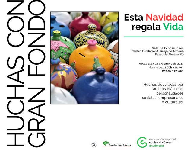 Huchas con gran fondo’ es el título de la exposición benéfica organizada por la Asociación Española Contra el Cáncer y que se inaugurará el próximo martes, 12 de diciembre, a las 19 horas, en el Centro Fundación Unicaja de Almería (Paseo de Almería). Las huchas, un objeto tan simbólico para la AECC, han sido decoradas con el talento y creatividad de destacados artistas plásticos, así como personalidades de la sociedad, cultura y tejido empresarial almeriense, que de nuevo se han volcado con una iniciativa benéfica de la Asociación.