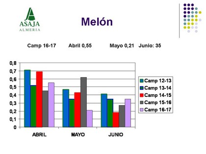 ASAJA ha señalado cómo estas frutas empezaron la campaña en abril con cotizaciones similares a las del año anterior, y cómo rápidamente empezaron a caer a pesar de contar con una menor superficie sembrada. Así, en el mes de mayo los precios de estos dos productos apenas han superado los 20 céntimos/kg para el agricultor, a pesar de la excepcional calidad que este año han tenido estos productos, si bien en los últimos días del mes y este inicio de junio se han recuperado un poco, coincidiendo con la entrada en vigor de nuevas indemnizaciones por retirada, mediante las cuales por retirar melón a distribución gratuita se destinan 48 céntimos y 36 para otros destinos. Sin embargo, la Organización advierte cierta relajación en los últimos días a pesar de encontrarnos en un momento con una elevada demanda.