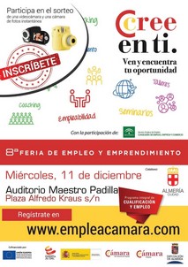 La Cámara de Comercio de Almería, en colaboración con el Ayuntamiento y la Diputación, va a desarrollar el próximo miércoles 11 de diciembre la 8º Feria de Empleo y Emprendimiento dentro del Programa Integral de Cualificación y Empleo (PICE), que servirá como punto de encuentro entre empresas, agentes vinculados al empleo y los/las jóvenes en situación de desempleo con el fin de facilitar la inserción laboral, fomentando la competitividad de las empresas e involucrando para ello a los sectores más representativos de la provincia. El encuentro se realizará en el Auditorio Maestro Padilla de Almería en horario de 10.00 a 19.00 horas.