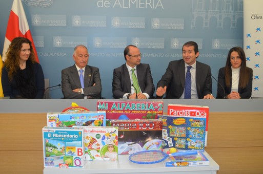 El alcalde de Almeria, Luis Rogelio Rodríguez Comendador, el presidente de la diputación, Gabriel Amat, y el delegado general de CaixaBank en Andalucía Oriental Miguel Ángel Palanco, han presentado este viernes, 20 de diciembre, la campaña “[Tu] juguete estrella”. Esta acción tiene por finalidad el reparto de juguetes entre niños en situación de vulnerabilidad social para que, en esta Navidad, ningún niño se quede en Reyes sin la ilusión de recibir algún juguete.