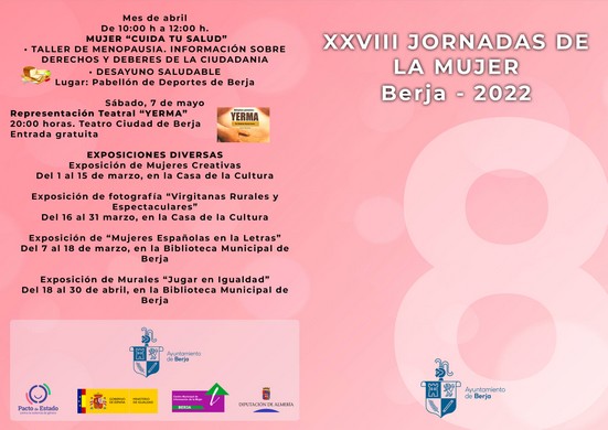 El Ayuntamiento de Berja, a través del área de la Mujer, ha presentado la programación diseñada para celebrar el Día Internacional de la Mujer del próximo 8 de marzo y en la que habrá exposiciones, actos conmemorativos, teatros, entre otros para la conmemoración de esta efeméride.