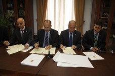 El alcalde de Almería, Luis Rogelio Rodríguez-Comendador, el presidente de la Diputación, Gabriel Amat, y el máximo responsable provincial de la Cámara de Comercio, Diego Martínez, han firmado este jueves un convenio de colaboración para desarrollar el Plan Estratégico ‘Costa de Almería’ a través del cual “queremos promocionar turísticamente Almería y, en concreto, su aeropuerto como destino para las principales compañías aéreas del mundo”, en palabras del primer edil almeriense. Al acto ha acudido también el director del Aeropuerto, Santiago Yus.