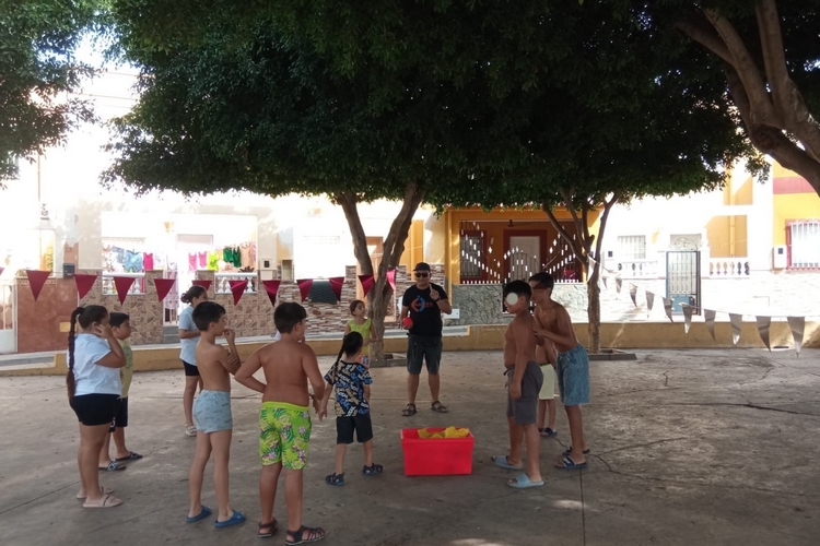 La iniciativa ha consistido en una mañana de diversión y convivencia con los vecinos y las vecinas del barrio, en la que no han faltado juegos tradicionales con agua, el pañuelo, atrapa al globo, etc. El Ayuntamiento de Vicar, ha colaborado en la actividad ofreciendo un desayuno saludable para todas las personas participantes.