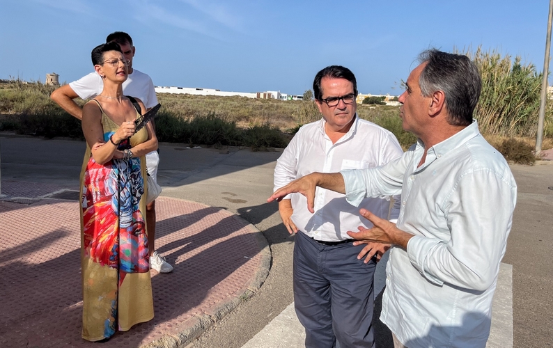 El concejal de Agua, Zonas Verdes y Agricultura, Juan José Segura, y el diputado provincial de Fomento, Infraestructuras, Vertebración del Territorio y Agua, Antonio J. Rodríguez, juntos a los técnicos de Fomento, han visitado este núcleo costero para reunirse con los vecinos y estudiar la situación para darle una solución.