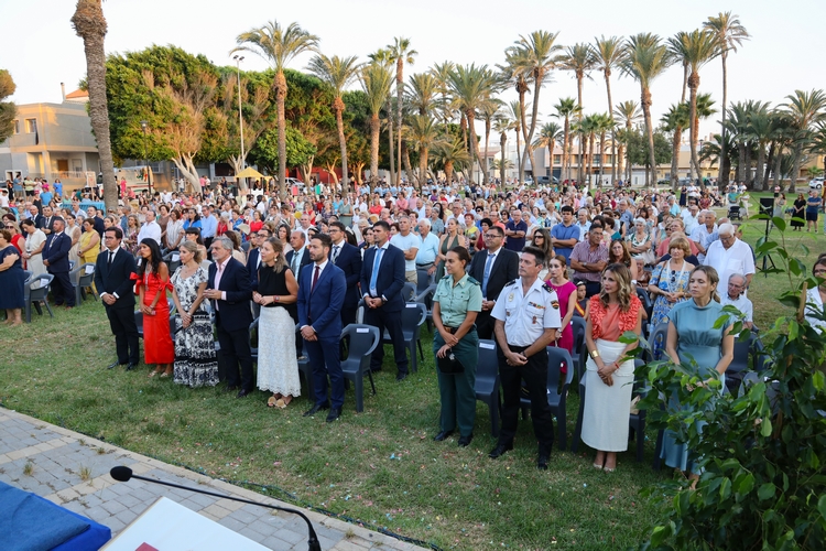El alcalde de El Ejido, Francisco Góngora, junto a la presidenta de la Junta Local, Yasmina Ferrón; miembros del equipo de Gobierno, de la Corporación Municipal; la parlamentaria andaluza Julia Ibáñez, representantes de Fuerzas y Cuerpos de Seguridad del Estado, así como vecinos, fieles y devotos, ha asistido a la Misa.