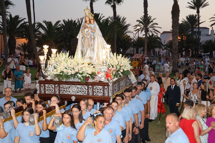 Las fiestas patronales de Balerma en honor a la Virgen de las Mercedes han llegado esta noche a su fin con la celebración de la Santa Misa en el Parque El Palmeral y la posterior procesión por tierra y mar de la imagen.