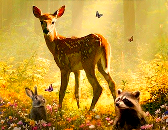El film, presentado en la pasada edición del Festival de Cine Europeo de Sevilla, es una historia de aventura, protagonizada por el famosos cervatillo junto a los demás animales del bosque –todos reales–: ciervos, águilas, lobos y perros, y sus amigos el conejo, el cuervo, y los mapaches.