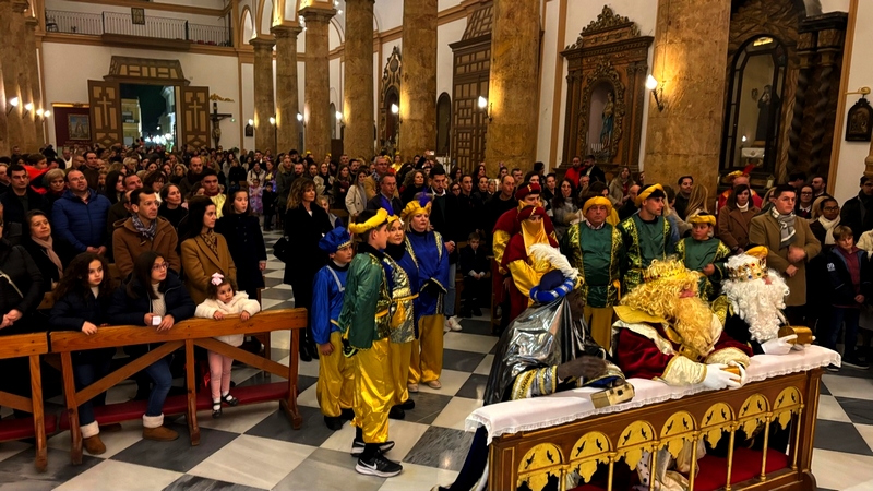 Los Reyes Magos repartieron miles de kilos de caramelos en una noche que culminaba en la Plaza de la Constitución con el espectacular castillo de fuegos artificiales que iluminó el cielo al final del recorrido, para dar paso a la adoración al Niño Jesús en la Parroquia de la Anunciación.